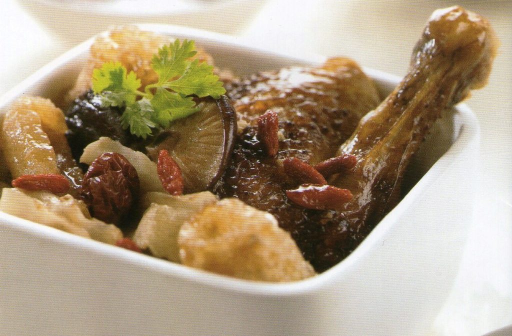 Ingredients: Chicken 1 pcs Fish stomach 30gm Sea cucumber 2pc Scallops 100 g Pig’s feet tendon 100 g Shitake mushroom 10pcs Abalone According to preference Medlar According to preference Huiji Health Tonic According to preference Method: Boil 3 big bowls of water. Put in the chicken into the pot and use low heat to […]