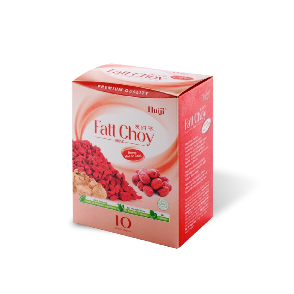Huiji Fatt Choy Tea is also known as Red Date Tea. Made with 100% natural ingredients, it is a fragrant and tasty beverage that is suitable for any gender, age and occasion to remove toxins and improve immunity. Huiji Fatt Choy Tea helps to enrich and replenish blood, keep the body warm, revitalise overall body and health wellness. Can be served hot or cold.